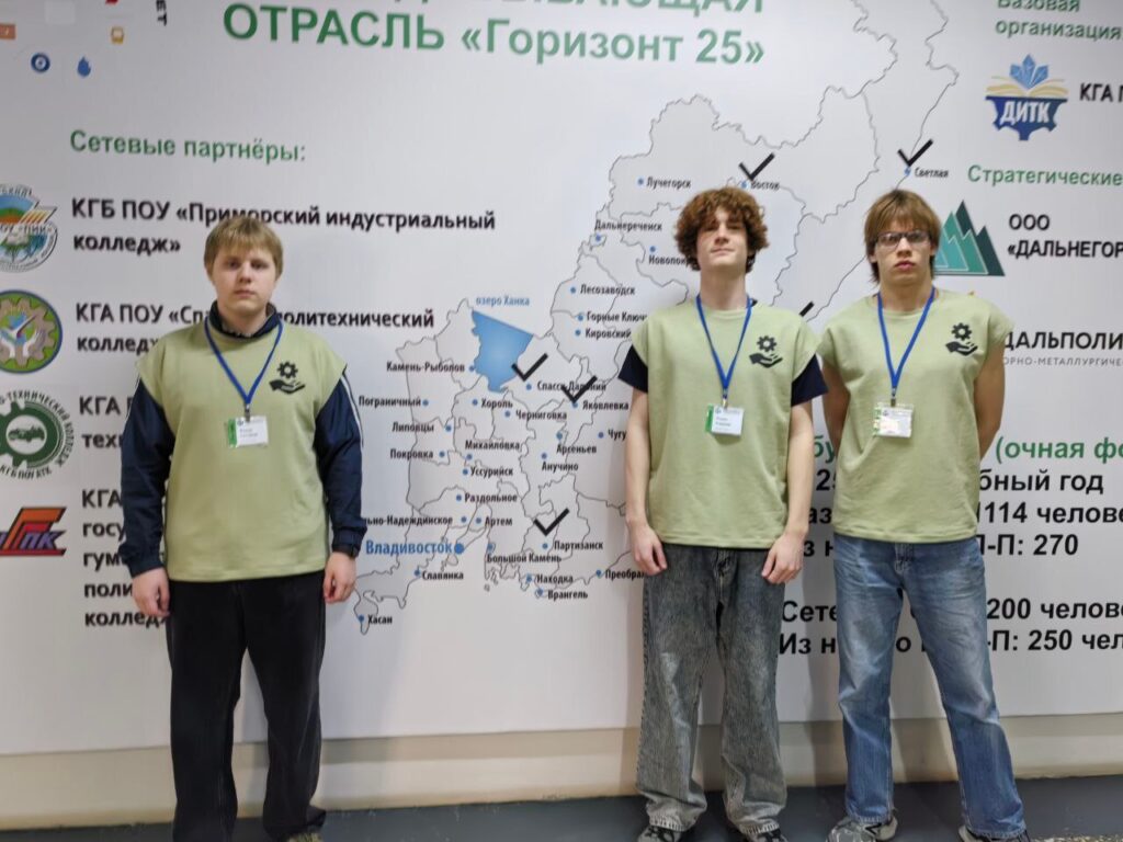 В Дальнегорске состоялось открытие очного этапа Чемпионата «Бережливое мышление». Наш колледж представляют студенты второго курса специальности «Технология машиностроения» Казакул Арсений, Кунгуров Федор и Андреев Роман в сопровождении куратора и наставника команды Светланы Анатольевны Трофимовой.
